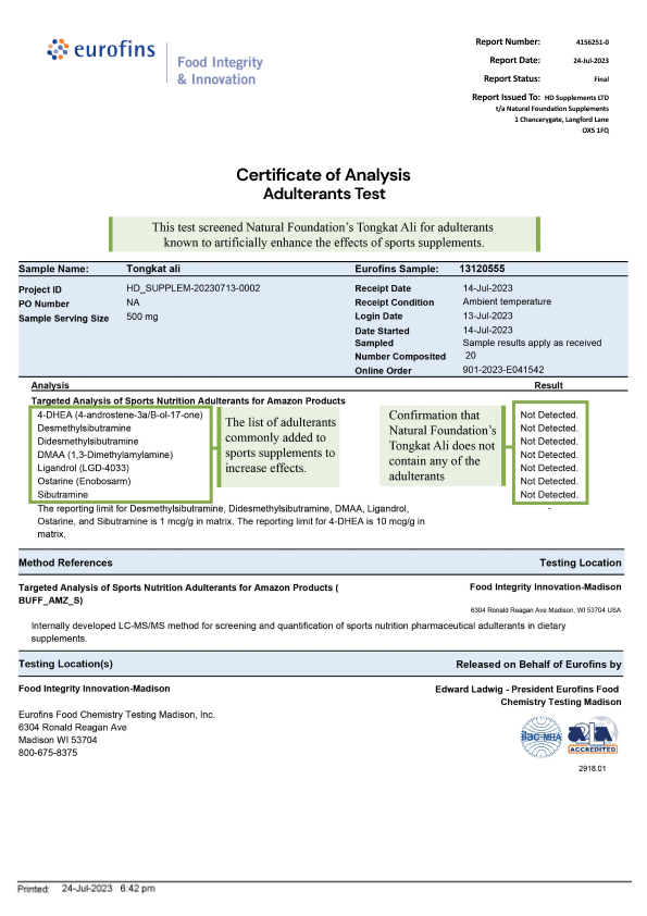 TONGKAT ALI 3RD-PARTY TESTS